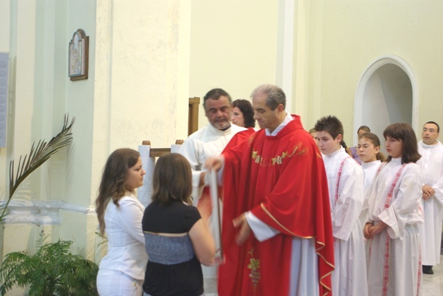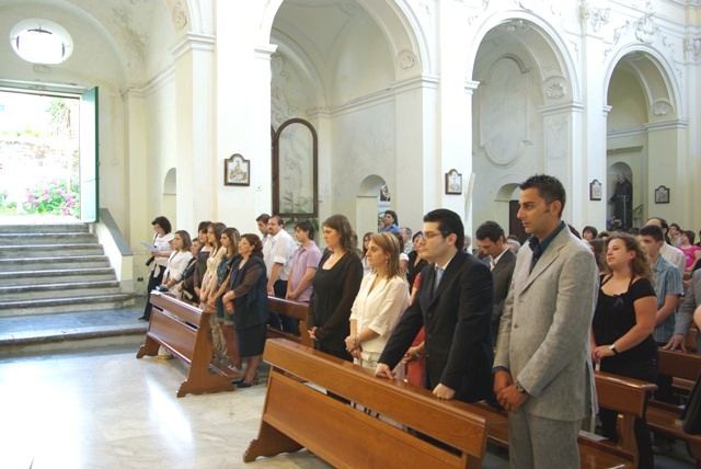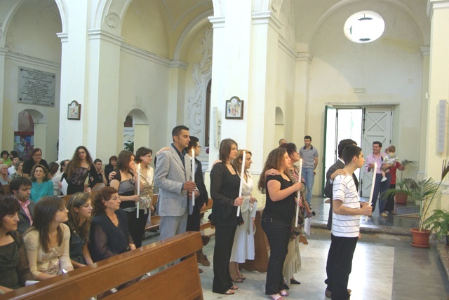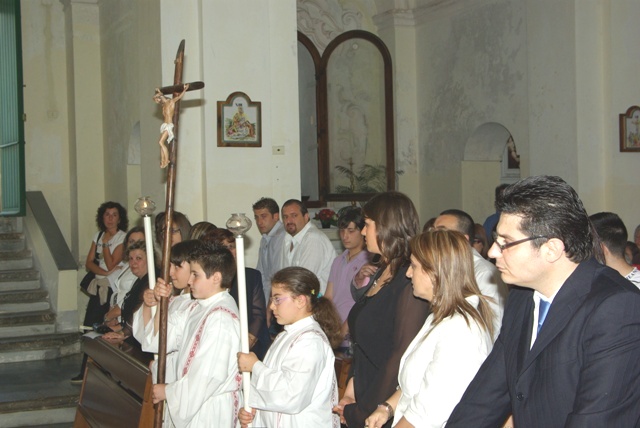 Giovedì, 19 giugno 2008, presso la chiesa di San Domenico in Acquamela di Baronissi, don Giuseppe Iannone, vicario Episcopale, ha conferito il Sacramento della Confermazione a 14 giovani della nostra forania. La comunità desidera ringraziare il Vicario per le splendide parole spese durante l’omelia e per l’alto decoro dato alla Celebrazione Eucaristica. Di seguito alcuni scatti della serata, che testimoniano la partecipazione popolare all’evento.