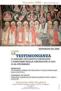 Perché le comunità cristiane dell’Asia, contemplando il volto di Cristo, sappiano trovare le vie più consone per annunciarLo alle popolazioni di quel vasto continente, ricco di cultura e di antiche forme di spiritualità, nella piena fedeltà al Vangelo.