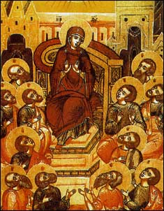 "Mentre stava compiendosi il giorno della Pentecoste, si trovavano tutti insieme nello stesso luogo. Venne all’improvviso dal cielo un fragore, quasi un vento che si abbatte impetuoso, e riempì tutta la casa dove stavano. Apparvero loro lingue come di fuoco, che si dividevano, e si posarono su ciascuno di loro, e tutti furono colmati di Spirito Santo e cominciarono a parlare in altre lingue, nel modo in cui lo Spirito dava loro il potere di esprimersi.[…]".