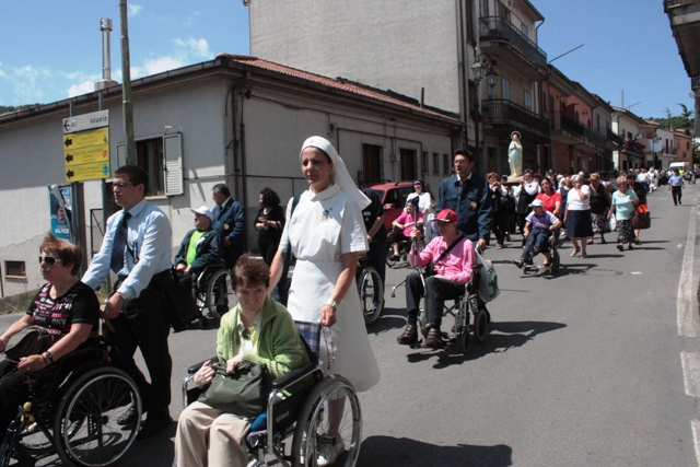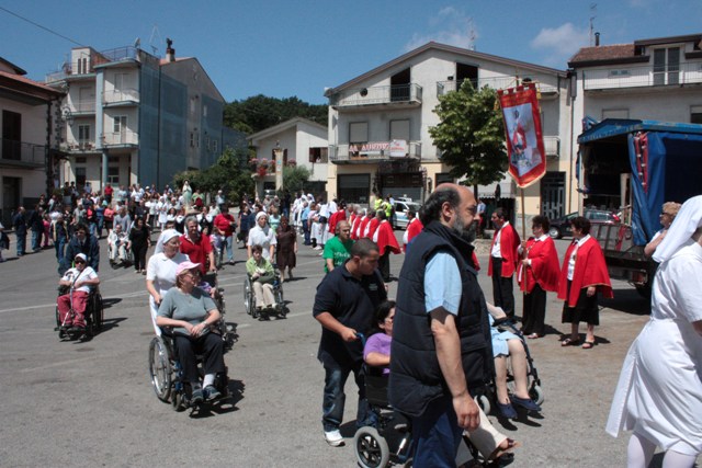 Alle ore 11.00, in processione solenne guidati dalla statua della Madonna di Lourdes, il corteo animato dalla recita del Santo Rosario, ha sfilato per le vie del paese fino a giungere alla chiesa di san Vito dove si è tenuta la solenne celebrazione Eucaristica presieduta da don Giovanni Albano. Momenti di forte intensità emotiva si sono avuti durante l’omelia e durante le preghiere spontanee che gli ammalati e i loro accompagnatori hanno esternato all’assemblea nonché nel saluto che Don Antonio ha fatto ai presenti a nome della comunità locale.