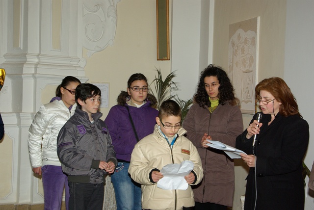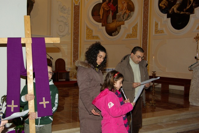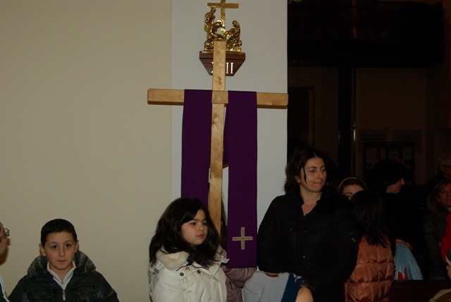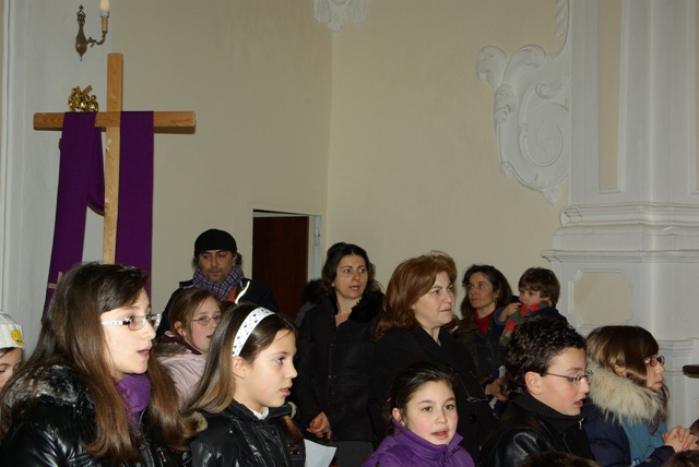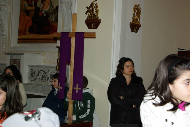 Tutti i presenti sono stati impegnati: chi a seguire la Croce nelle varie stazioni, chi ha riempire un cartellone con disegni delle varie stazioni della via Crucis, chi a leggere, chi a cantare.