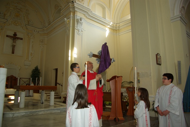 Oggi l’azione liturgica è dominata dalla croce; manifestazione luminosa dell’amore divino spinto alla follia, la croce lascia spazio solo al silenzio e alla contemplazione, anche la comunità di Aiello-Acquamela riunita presso la chiesa di san Domenico ha adorato e pregato in attesa della Pasqua di Risurrezione.