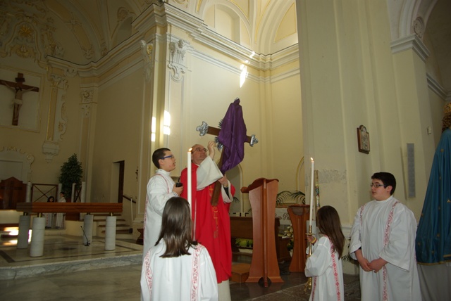 Oggi l’azione liturgica è dominata dalla croce; manifestazione luminosa dell’amore divino spinto alla follia, la croce lascia spazio solo al silenzio e alla contemplazione, anche la comunità di Aiello-Acquamela riunita presso la chiesa di san Domenico ha adorato e pregato in attesa della Pasqua di Risurrezione.