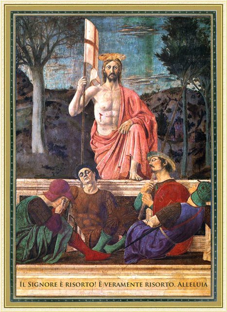 “Esulti il coro degli angeli, esulti l’assemblea celeste: un inno di gloria saluti il trionfo del Signore risorto. Gioisca la terra inondata da così grande splendore; la luce del Re eterno ha vinto le tenebre del mondo. Gioisca la madre…