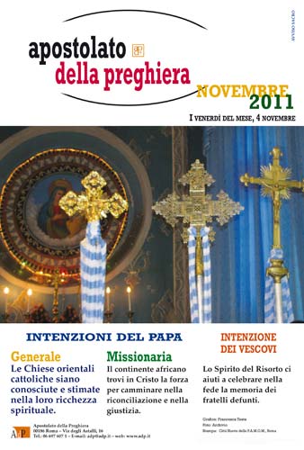 Cuore divino di Gesù, io ti offro per mezzo del Cuore Immacolato di Maria, madre della Chiesa, in unione al Sacrificio eucaristico, le preghiere e le azioni, le gioie e le sofferenze di questo giorno: in riparazione dei peccati, per…
